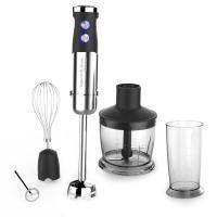 В комплекте идут съемная насадка-блендер, нож-измельчитель, венчик и насадка-капучинатор, которые быстро и качественно измельчают, взбивают и смешивают любые продукты. Благодаря высокой мощности и наличию 12 скоростей и Турборежиму, обработка продуктов и доведение их до желаемой консистенции занимает считанные секунды.