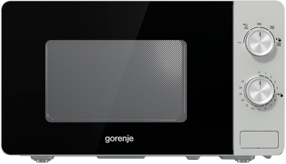 В микроволновую печь Gorenje MO20E1S встроен автоматический режим разморозки, при котором устройство самостоятельно выбирает оптимальное время и мощность для подогрева замороженных продуктов. Управление и выбор одного из 5 уровней мощности обеспечиваются поворотным механизмом. Опция защиты от детей, дисплей и возможность настроить часы отсутствует. Для приготовления максимально можно выставить 35 мин. Навесная дверца открывается при помощи кнопки. Габариты микроволновой печи таковы: 45.1 см x 25.7 см x 34.3 см. Весит печь 10.9 кг.