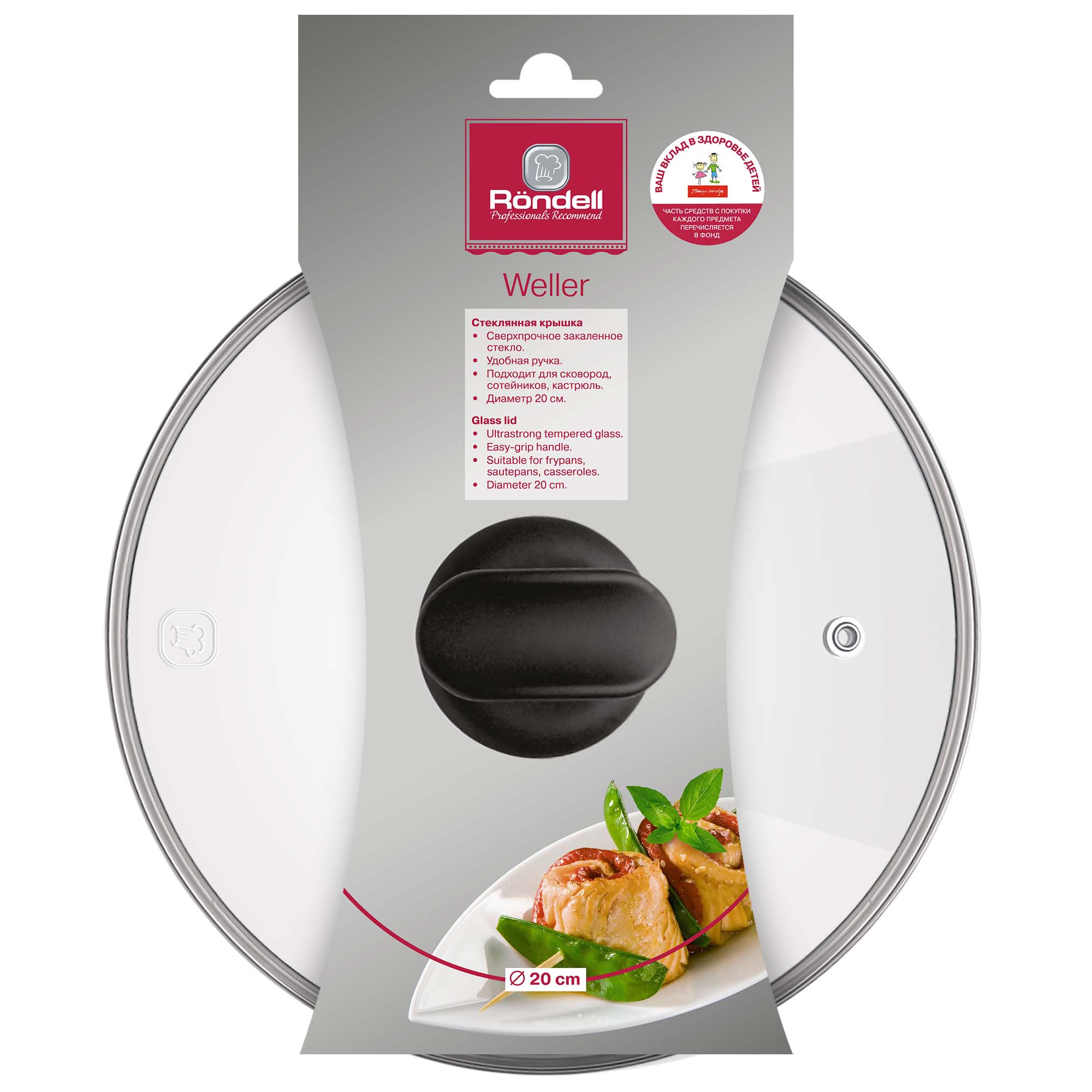 Крышка стеклянная 20 см Rondell Weller RD-125