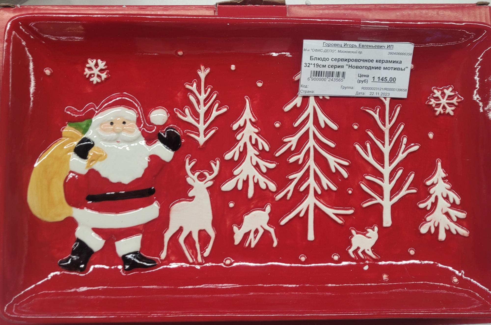 Блюдо сервировочное керамика 32х19 см серия "Новогодние мотивы"