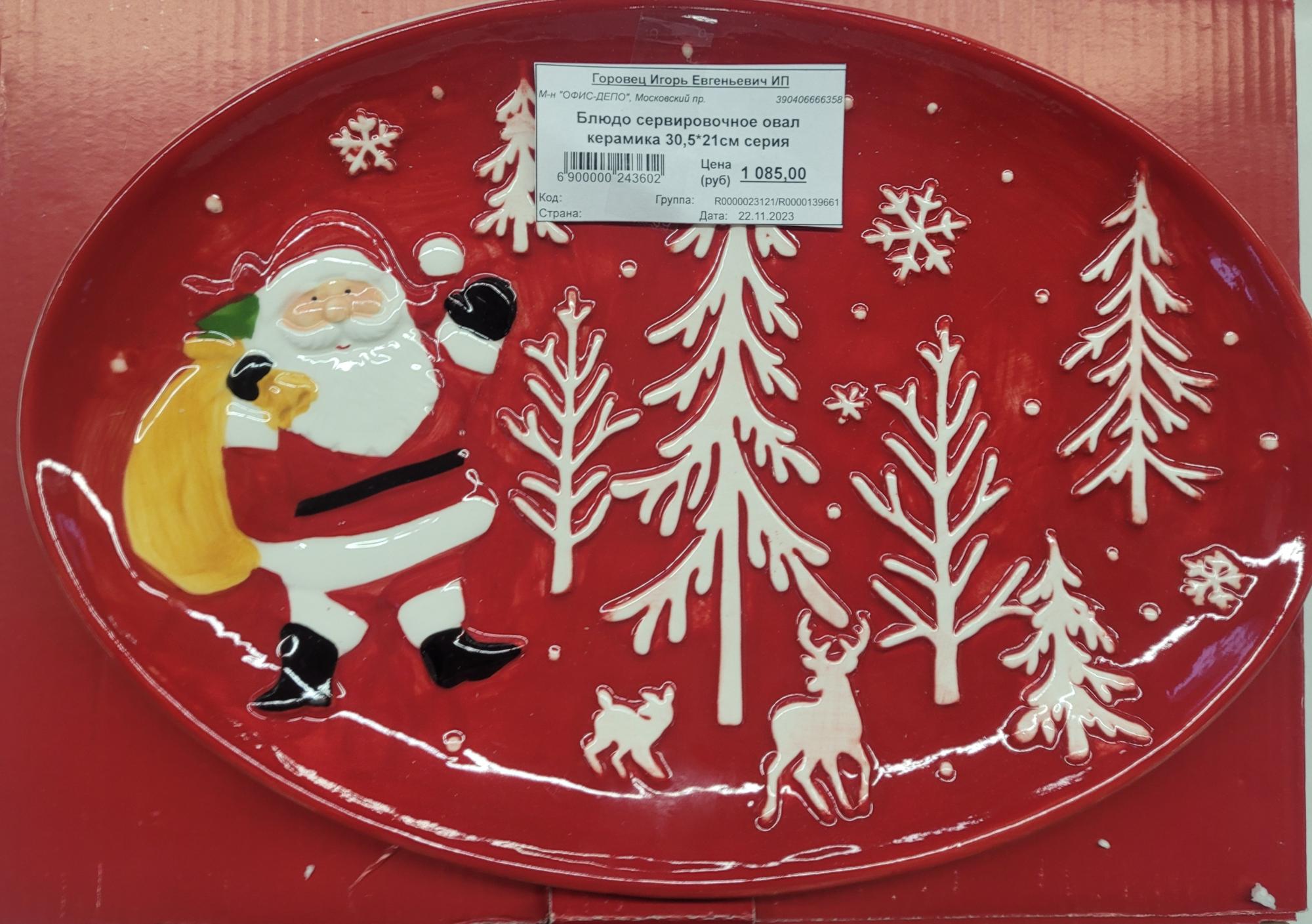 Блюдо сервировочное овал керамика 30,5х21 см серия "Новогодние мотивы"