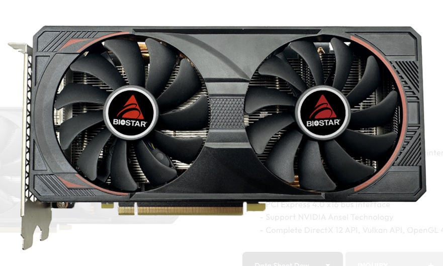 Видеокарта BIOSTAR GeForce RTX3060Ti GDDR6 8192Mb 256-bit. ( VN3606TM82 )