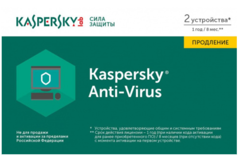 Антивирус касперского Russian Edition. на 2 ПК на 1 год продление