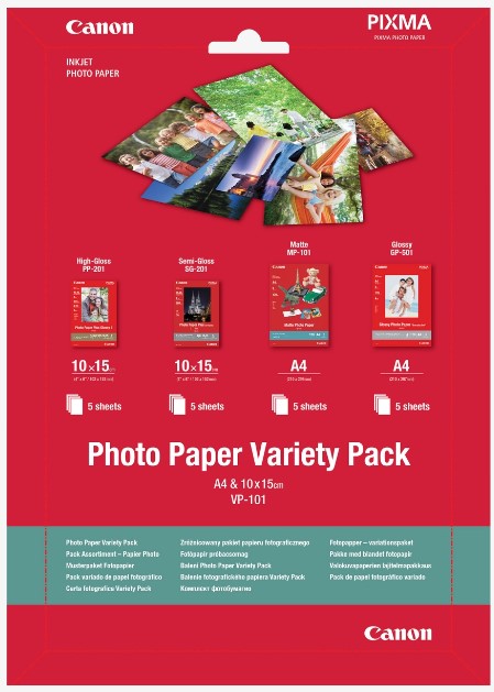 Набор фото-бумаги Canon: 5л 10x15 см (глянц), 5л 10x15 (полуглянц), 5л A4 (матов), 5л A4 (глянц)