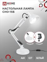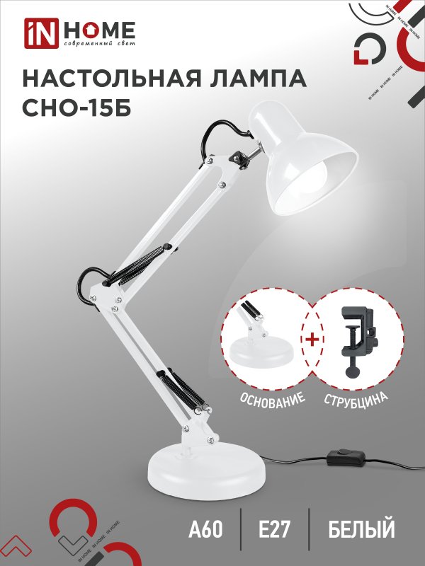 Лампа настольная IN HOME CНО 15 Б (60W/Е27) высота 60 см подставка+струбцина в комплекте, белый