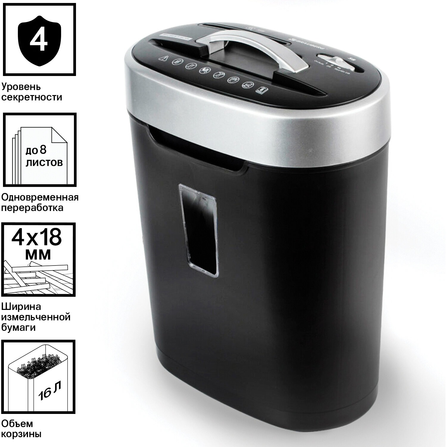 Уничтожитель бумаг 16 л, 8 листов BRAUBERG S8 4х18 мм