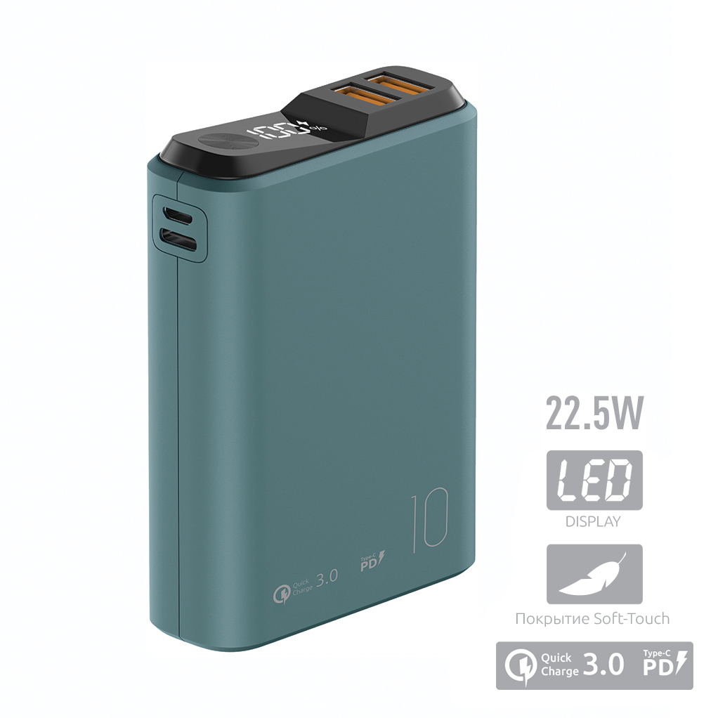Портативный аккумулятор OLMIO QS-10, 10000mAh, 18W QuickCharge3.0/PowerDelivery, LCD, мурена