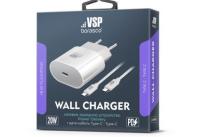 Сетевое зарядное устройство Power Delivery, 20W +Дата-кабель Type-C - Type-C, 3А, 1м, белое