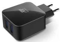 Сетевое зарядное устройство 2USB, 2,1A, черное, Borasco