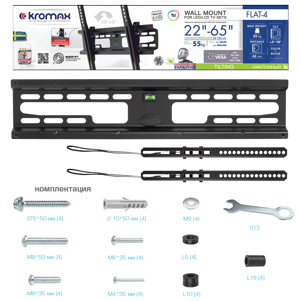 Крепление настенное для TV Kromax Flat-4 22"-65" Наклонное